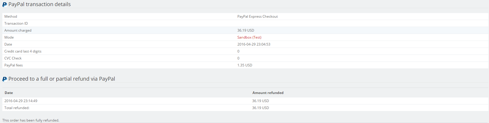 I tested the PayPal module in Sandbox mode and after I made sure everything was working I used the PrestaShop Cleaner to get rid of the test orders. Now that my website is live and I received a few orders I noticed that my previous test orders are showing up in the PayPal Transaction Details section. The screenshot below shows the Sandbox mode test order details that have nothing to do with my new orders. Even the test refund info is showing up on new orders. I only did a couple test orders so I'm guessing once I get a few more orders it will start showing the real transaction details.
