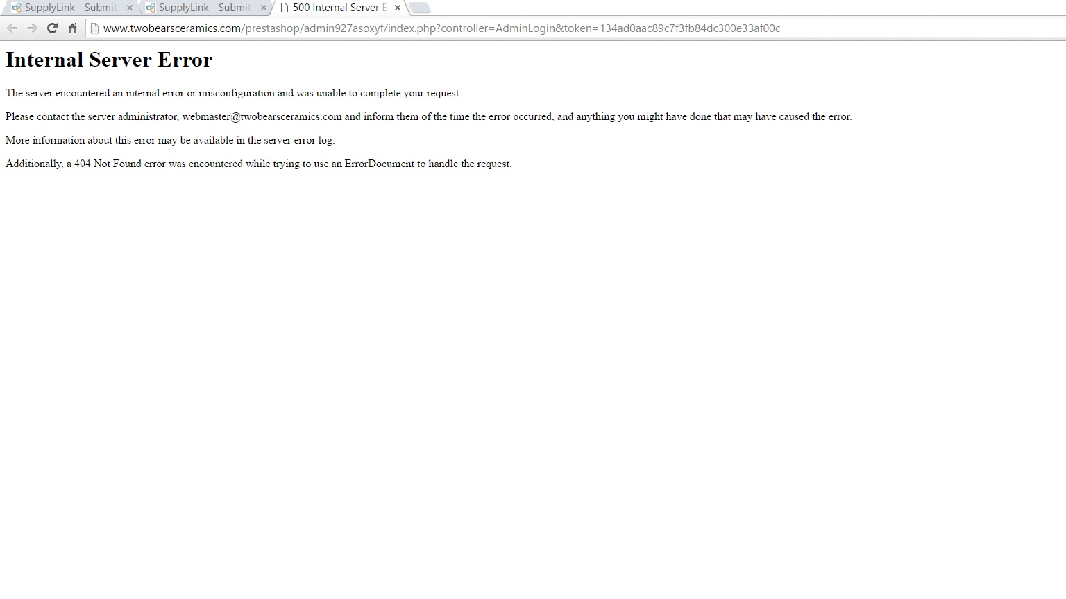 Two Bears Ceramics Posted May 11, 2016 Share Posted May 11, 2016 Currently unable to access backend log in screen. See screen shot. It is not my server that is the problem. I am wondering if somehow I have blacklisted myself or something like this I recently cleared all cookies - does this have anything to do with it? Permissions??? Technoneanderthal here. (Love Neanderthals BTW) I also experienced problems accessing the Bridge through Storemanager for Prestashop at the same time. Second Screenshot. I can access all files through Cpanel and through FTP. Grateful for any help. Ed Link to comment Share on other sites More sharing options...