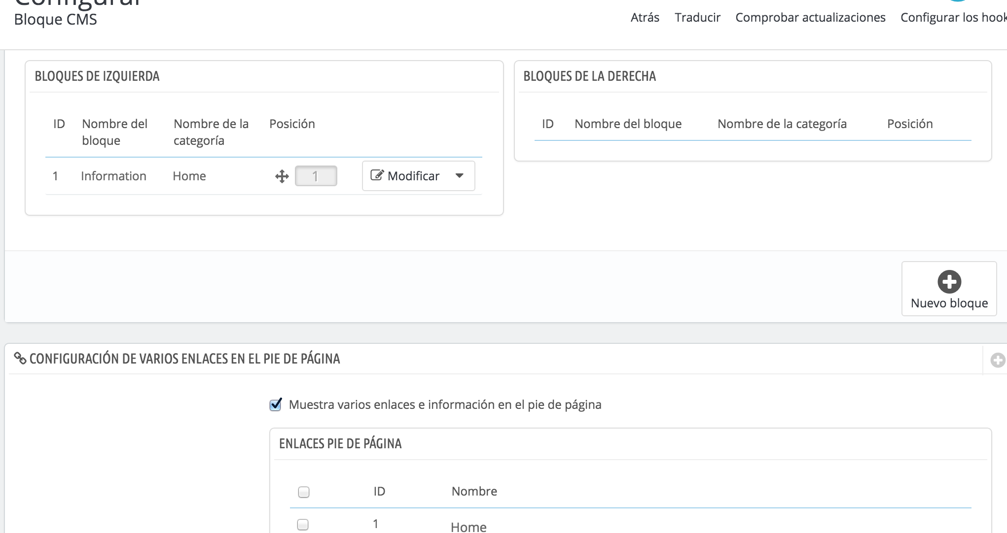 merys8 Posted May 13, 2016 Share Posted May 13, 2016 (edited) Buenas, a ver mi problema puede resultar algo tonto, he creado las categorías de productos en el back ..he hecho asociaciones.. y hasta ahí todo bien. Luego me surgieron dudas respecto a la modificación del menú horizontal, que ya están resueltas...pero ahora..resulta que si hago click no se me despliegan o mejor dicho no me dirige a todos los productos asociados. La única forma que tengo de que los productos aparezcan es mediante el buscador, cuando he puesto la opción de todo el catálogo.Me he explicado? jaja- Luego en el footer me aparece Categorías y ningún nombre. Por otro lado, no consigo que los productos se vean en la página de inicio, como tampoco en novedades. Creo que toque algo que no consigo saber qué es. Alguna ayuda respecto a este tema? Muchísimas gracias. pd-Mi versión es la 1.6.1.1 El pantallazo 1 es lo que comento de la Categoría y nada mas.. se donde cambiar y eliminar lo de información que es en bloque CMS, ahí se puede añadir las páginas de categorías?pantallazo 2, porque como veis solo me sale Home.., igual debería añadir bloque CMS con las demás? EL 3 pantallazo es lo que os comento que solo me salen las categorias si las buscas.... Graciassss Edited May 13, 2016 by merys8 (see edit history) Link to comment Share on other sites More sharing options...