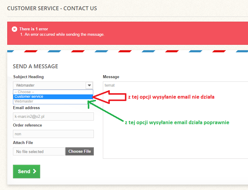 pojawił mi się dziwny problem, mianowicie nie można z mojej strony www z opcji customer service wysłać do mnie email z zapytaniem id...
