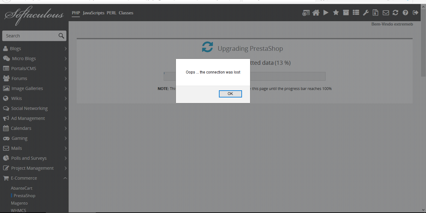 Connection lost no upgrade 1.6.1.0 para 1.6.1.5