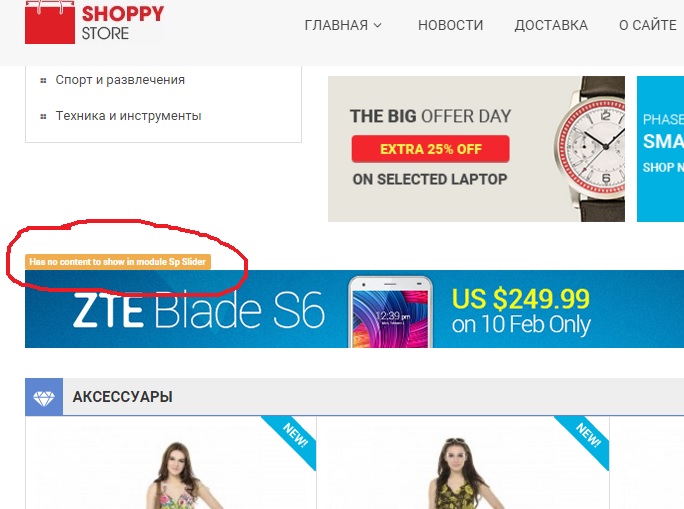 yuazakharov Posted May 16, 2016 Share Posted May 16, 2016 (edited) www.uluu.ru presta 1.6.1.5 шаблон shoppy store 1.0.0 Демо шаблона. Должно быть как тут. Каким-то странным образом модули "рекомендуемые товары" и "smartbloghomelatest" (SP Extra Slider) стали не отображаться в главной странице. Заметил это после того как я скопировал русификацию с дефолтного шаблона, в меню локализации. Пробовал убрать ru.php с шаблона, отключить и включить. В расположение блоков ничего трогал. Кэш чистил, отключен. Стоит принудительная компиляция ctr+f5 пробовал Обычно когда отключаешь модуль, отображается сообщение как вложении (красным кружочком помечено). А в моем случае не появляется. Эта я отключил другой модуль. Пробовал убрать if условие хука displayLeftColumn в header.tpl {if isset($left_column_size) && !empty($left_column_size)} <div id="left_column" class="column col-sm-12 col-md-{$left_column_size|intval}">{$HOOK_LEFT_COLUMN}</div> {/if} P.S. не отображаются только на главной странице Edited May 16, 2016 by yuazakharov (see edit history) Link to comment Share on other sites More sharing options...