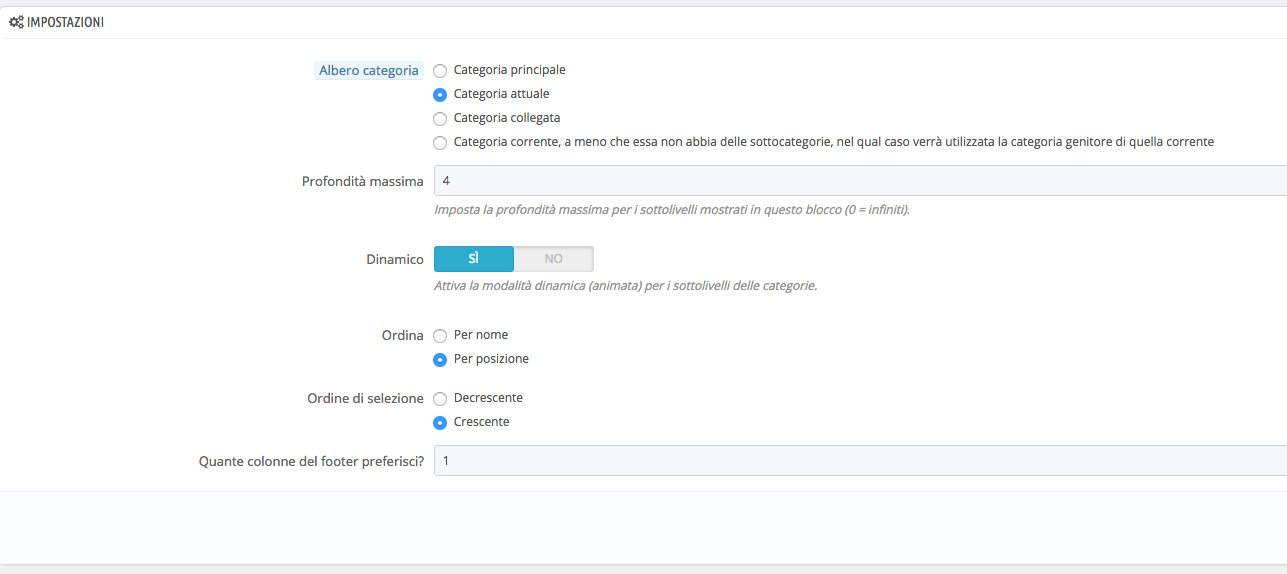 davide73 Posted May 18, 2016 Share Posted May 18, 2016 Salve a tutti, ho due siti identici su due domini differenti con la versione PS 1.6.1.4 in entrambi ho la stessa template, ed in entrambi ho impostato il BLOCCO CATEGORIE per essere visualizzato sulla colonna sinistra. Ora il mio problema e che in un sito prende un tipo di classe e si vedono solo le principali categorie con il pulsante + che poi apre le sottocategorie, nel'altro l'albero delle categorie e totalmente aperto. Nel primo caso, (QUELLO CHE VORREI SEMPRE) ho la seguente classe: <ul class="tree dynamized" style="display: block;"> ed il menù è chiuso con i pulsanti + per aprire le sotto categorie. nel secondo caso ho la seguente classe: <ul class="tree dhtml"> ed il menù resta aperto sempre.... mannaia!!!! infine verificando le impostazioni del modulo ho tutto identico, lo allego come screenshot: Ora la mia domanda è: come mai se tutte le impostazioni sono uguali uno ha una classe e l'altro un'altra? da dove si può intervenire per modificare la classe? quali sono i file che generano tale differenza e come posso rimediare? attendo l'aiuto di qualcuno che ne capisce più di me grazie mille.... Link to comment Share on other sites More sharing options...