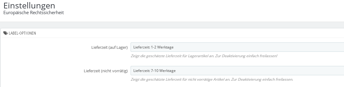 Die globale Einstellung der Lieferzeit des Moduls "Europäische Rechtssicherheit v2.0.2" ist bei Artikeln mit Varianten fehlerhaft.