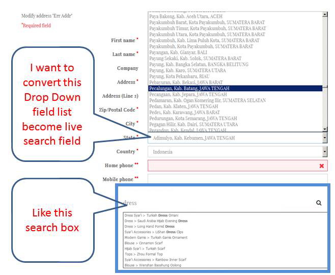 raliabdillah Posted June 30, 2016 Author Share Posted June 30, 2016 Hi all, Sorry for my very late response... I am in Indonesia, we have 34 provinces, 400++ cities/districts and 6000++ subdistricts. All shipping rate calculated based on subdistricts, but Prestashop can only filter country and state, so we have all subdistricts in state field. If we cant convert the list to search field, Is there any method to filter it by country>Province>Districts>Sub-Districts? Link to comment Share on other sites More sharing options...
