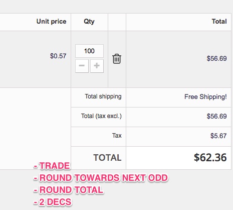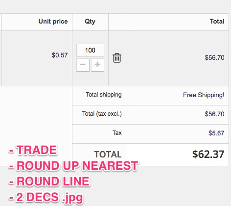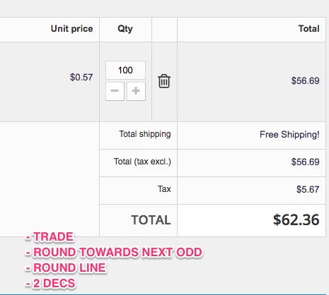 swinga Posted May 20, 2016 Share Posted May 20, 2016 On QTY break discount pricing, the rounding for Tax is never right. We have an issue with rounding. We have tried all combinations. The closest in the examples attached show we are still .30c out. We have tried to 2 decimal places and also 3. What is the solution? Link to comment Share on other sites More sharing options...