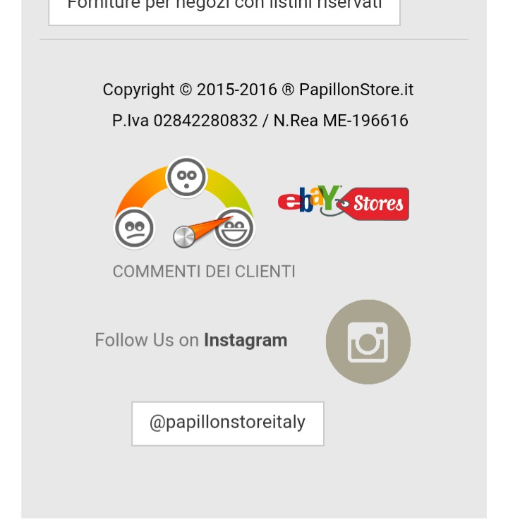 fusus Posted May 24, 2016 Author Share Posted May 24, 2016 Se al posto di criticare scendi giu ti metti gli occhiali e leggi la nostra p.iva ben visibile da due anni,sarebbemolto meglio.Non abbiamo aggiornato il template,per avere una grafica migliore semplicemente per evitare problemi.Visto l innumerevoli ordini non possiamo permetterci blocchi. Spero di essere stato chiaro Link to comment Share on other sites More sharing options...