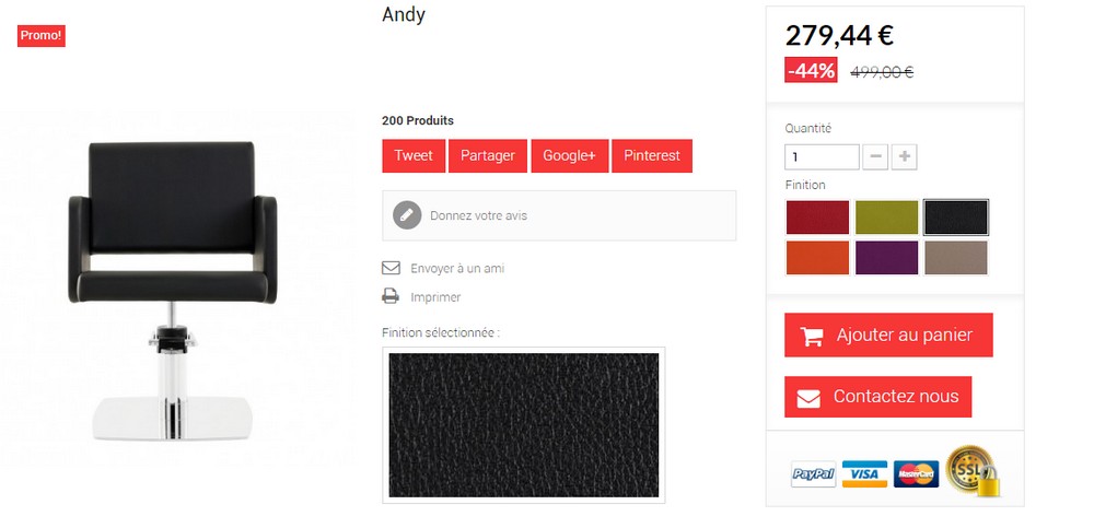 Je met en place actuellement un site e-commerce de mobilier pour salon de coiffure.
