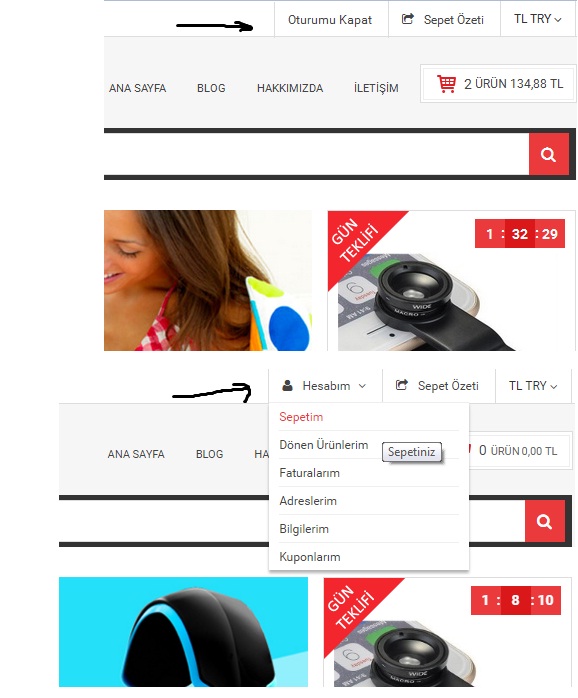 Profdizayn Posted May 25, 2016 Share Posted May 25, 2016 S.a. arkadaşlar şöyle bir problem var. Siteye kullanıcı girişi yapmadan önce sitenin sağ üst tarafında hesabım menüsü (sepetim, adreslerim) açılır menü olarak açılıyor tamda benim istediğim gibi. Yalnız Üye girişi yaptığımda Hesabım menüsü yok oluyo onun yerine "oturumu kapat" geliyor. "Hesabım" menüsüde left pozisyonunda görünüyor. Hadi ben left pozisyonlardan kaldırırım da bu üye girişi yapıldığı zaman yine sitenin üstünde nasıl görüntüleyebilirim? umarım anlatabilmişimdir.. Link to comment Share on other sites More sharing options...