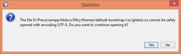 vipcyc Posted May 30, 2016 Author Share Posted May 30, 2016 Już tłumaczę, kolego mój sympatyczny. Otwieram plik "global.css" programem do edycji "NetBeans" 8.1. Program krzyczy na mnie, tylko w przypadku głównego pliku "Hola, ziomek nie mogę poprawnie odczytać tego pliku w kodowaniu windows 1250. Czy na pewno chcesz otworzyć?". A ja "No co w takim pliku może się stać, przecież nikt nie pisze styli po polsku". No i zonk, gdyż teraz nie wyświetlają mi się ikony a deklaracja ikon wygląda dziwnie: .icon-glass:before { content: ""; } .icon-music:before { content: "ď€?"; } .icon-search:before { content: ""; } .icon-envelope-o:before, .icon-envelope-alt:before { content: "ď€?"; } .icon-heart:before { content: ""; } .icon-star:before { content: ""; } .icon-star-o:before, .icon-star-empty:before { content: ""; } .icon-user:before { content: ""; } .icon-film:before { content: "ď€?"; } .icon-th-large:before { content: ""; } .icon-th:before { content: ""; } .icon-th-list:before { content: ""; } .icon-check:before { content: ""; } .icon-remove:before, .icon-close:before, .icon-times:before, .icon-remove:before { content: ""; } .icon-search-plus:before, .icon-zoom-in:before { content: ""; } .icon-search-minus:before, .icon-zoom-out:before { content: "ď€?"; } .icon-power-off:before, .icon-off:before { content: ""; } .icon-signal:before { content: ""; } .icon-gear:before, .icon-cog:before { content: ""; } .icon-trash-o:before, .icon-trash:before { content: ""; } .icon-home:before { content: ""; } .icon-file-o:before, .icon-file-alt:before { content: ""; } .icon-clock-o:before, .icon-time:before { content: ""; } .icon-road:before { content: "ď€?"; } .icon-download:before, .icon-download-alt:before { content: ""; } .icon-arrow-circle-o-down:before, .icon-download:before, .icon-download-alt:before { content: ""; } .icon-arrow-circle-o-up:before, .icon-upload:before, .icon-upload-alt:before { content: ""; } .icon-inbox:before { content: ""; } .icon-play-circle-o:before, .icon-play-circle:before, .icon-play-sign:before { content: ""; } .icon-rotate-right:before, .icon-repeat:before { content: ""; } .icon-refresh:before { content: ""; } .icon-list-alt:before { content: ""; } .icon-lock:before { content: ""; } Z tego co kojarzę to raczej nie powinno to tak wyglądać, a powinien być tutaj kod w hex-a. Poza moim problemem to mój edytor bardzo brzydko wczytuje spacje i przejścia do nowej linii. Link to comment Share on other sites More sharing options...
