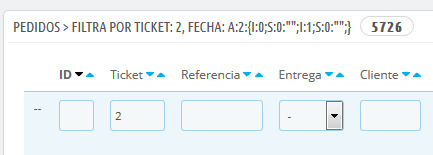 Pedidos > filtra por Ticket: 2, Fecha: a:2:{i:0;s:0:"";i:1;s:0:"";}