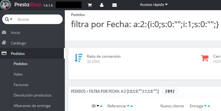 Cuando hago cualquier filtro en pedidos, no hace falta que sea por fecha, en el resumen justo al lado del filtro activado aparece el de fecha en el formato que supongo que se guarda en base de datos: