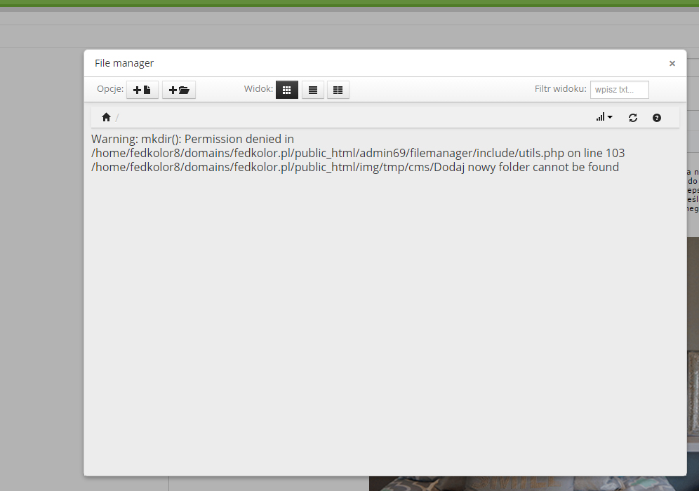 Chciałem dodać nowy folder w okienku gdzie wgrywa się zdjęcia na prescie i wyskoczyło mi coś takiego.