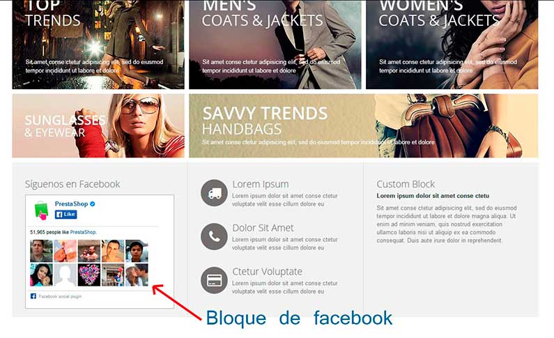 Valessi Posted June 1, 2016 Share Posted June 1, 2016 (edited) Buenas a todos, Tengo un problema en la plantilla por defecto de prestashop 1.6. Resulta que el bloque de información CMS personalizada, me viene por defecto con 2 columnas, y necesitaria una tercera columna para que apareciera el bloque de Facebook. La cuestión es que al ir al modulo de bloque CMS personalizado y añadir un nuevo bloque, no aparece por ningun lado, directamente no causa ningun efecto en la plantilla. ¿Alguna idea? Adjunto una foto con como lo tengo actualmente, y como me gustaría que quedase. Como puede verse en la imagen sólo hay 2 columnas, y necesitaria una mas para el bloque de Facebook. Gracias, un saludo. Edited June 1, 2016 by Valessi (see edit history) Link to comment Share on other sites More sharing options...