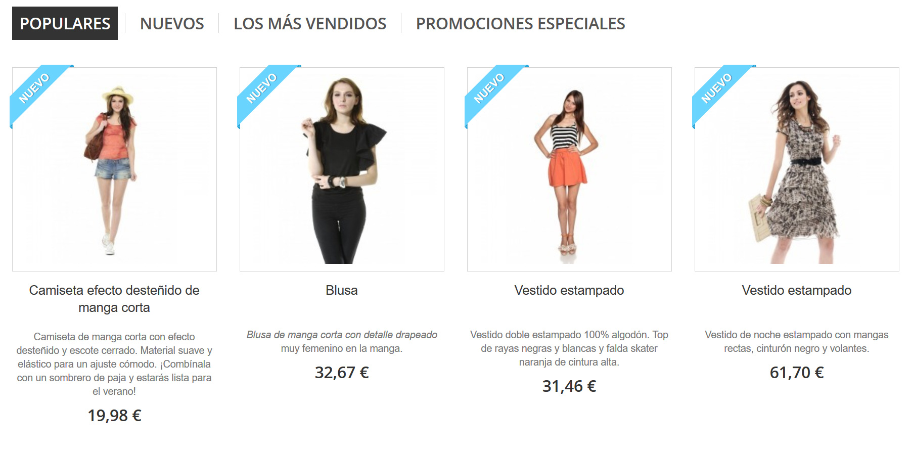 lastresmellizas Posted June 6, 2016 Author Share Posted June 6, 2016 (edited) Hi rocky, thanks for answering, I send you a link so you can see as out doing what you are commenting me: test Store In the product Blusa I put italics, as you can check out POPULARES text, you do not have to go out and not come out ready text when the category. List category (is where you have to do in italics) Thanks and regards Edited June 6, 2016 by lastresmellizas (see edit history) Link to comment Share on other sites More sharing options...