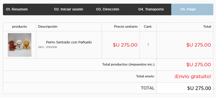 Y al mismo tiempo, que en el paso "05. Pago" (adjunto PAGO.PNG) aclare también que el costo es a estimar y no cómo dice ahora "¡Envío gratuito!