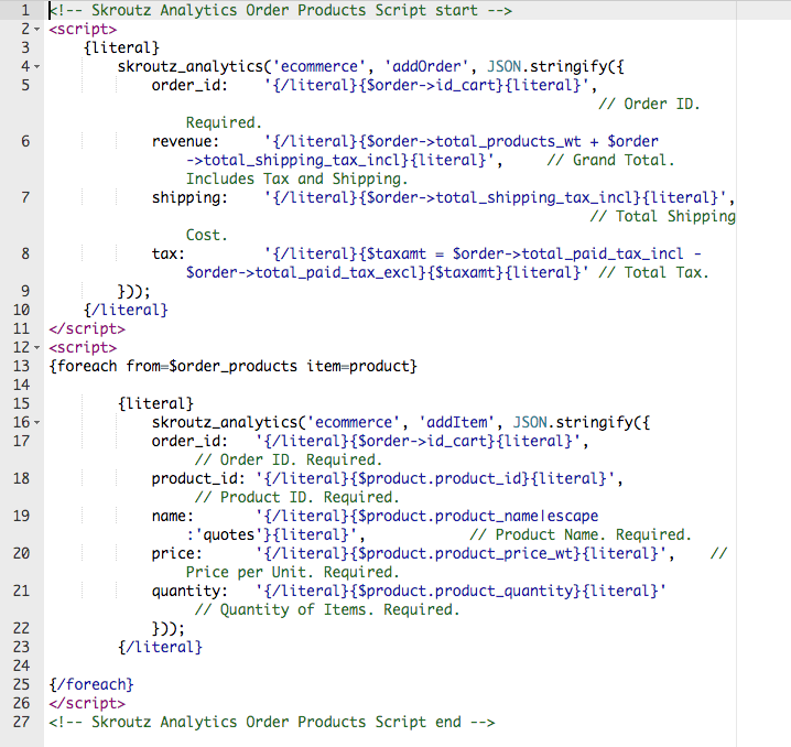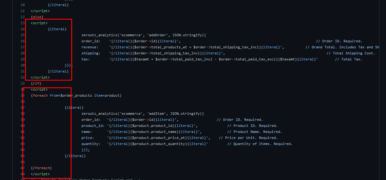 Site-View Posted July 27, 2022 Share Posted July 27, 2022 6 hours ago, Kostasgr said: Καλησπέρα σε όλοι την ομάδα, μήπως έχετε καμία ιδέα τι ακριβώς θέλει ο skroutz να αλλάξω στα script tags? Μου έστειλαν ένα ticket από το skroutz που αναφέρει ότι: Καλημέρα σας από τη τεχνική ομάδα του Skroutz Analytics, Επιπροσθέτως, παρατηρήσαμε ότι οι εντολές : skroutz_analytics('ecommerce', 'addOrder', ...); skroutz_analytics('ecommerce', 'addItem', ...); έχουν ενσωματωθεί στο ίδιο script tag. Παρακαλούμε να προχωρήσετε σε ενσωμάτωση των συγκεκριμένων εντολών σε ξεχωριστά script tags, προκειμένου να λειτουργεί όσο το δυνατόν αρτιότερα η υπηρεσία Skroutz Analytics. Αναμένουμε αντίστοιχα τις διορθώσεις σας σχετικά με τις εντολές addOrder και addItem, οι οποίες πρέπει να ενσωματωθούν σε ξεχωριστά script tags, χωρίς άλλα scripts μέσα στο κάθε script tag από αυτά τα 2. Μπαίνεις μέσα στο tpl η php δε θυμάμαι που το έχει, θα δεις αυτές τις τρεις γραμμές, θα βγάλεις από μπροστά το παλιό κώδικα και θα βάλεις αυτό που σου έστειλαν πριν την παρένθεση. Θα σώσεις και είσαι οκ. Link to comment Share on other sites More sharing options...
