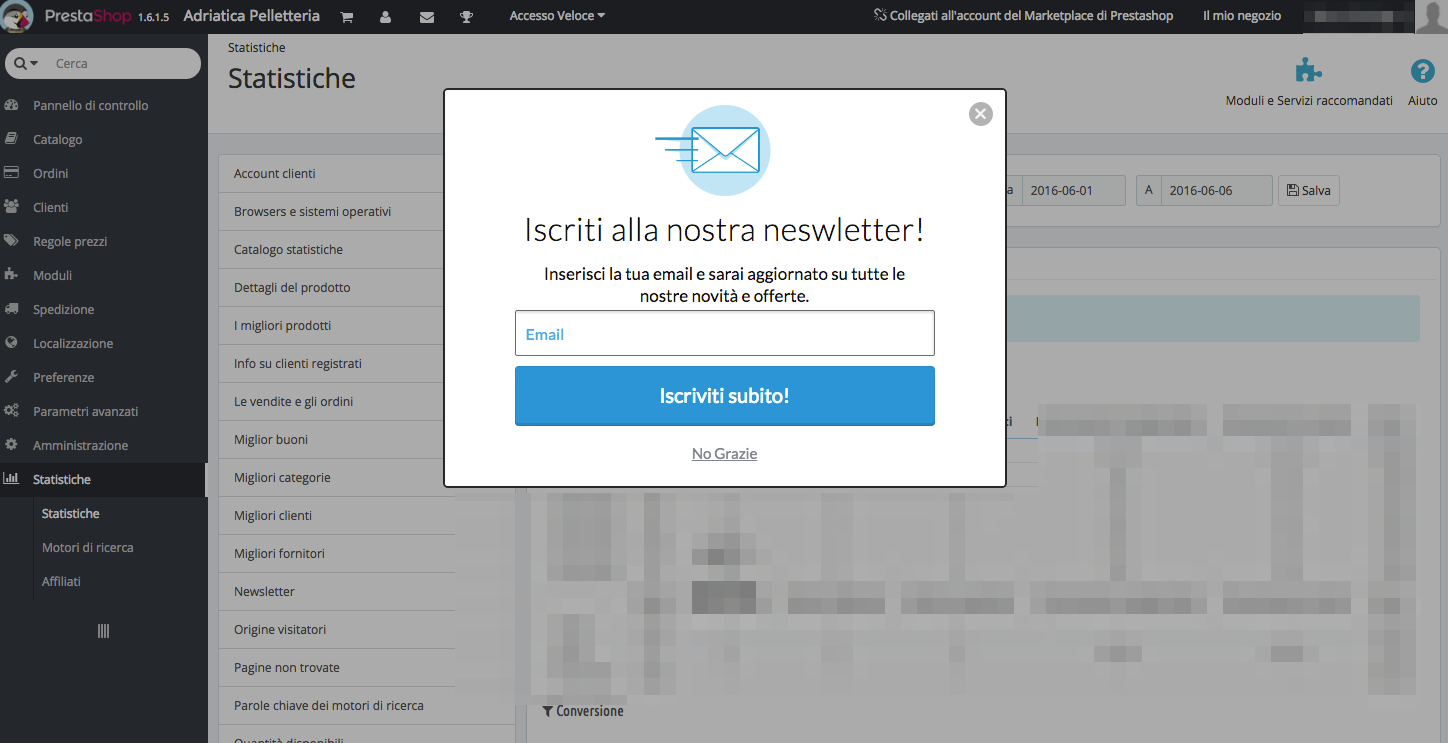 cla75an Posted June 6, 2016 Share Posted June 6, 2016 (edited) Ciao a tutti, ho installato il codice JS di Privy.com per salvare le sottoscrizioni alla newsletter sul sito su cui sto lavorando http://www.adriaticapelletteria.it Ho inserito il codice tra i parametri <head></head> all'interno del file /httpdocs/themes/default-bootstrap/header.tpl La cosa strana è che il popup appare nella sezione admin (vedi allegato) invece che nella pagina al pubblico. Il codice che inserisco è il seguente: {literal} <script type='text/javascript'> var _d_site = _d_site || 'E5A554134F22B5EE12A927E4'; (function(w, d, p, s, s2) { w[p] = w[p] || function() { (w[p].q = w[p].q || []).push(arguments) }; s = d.createElement('script'); s.async = 1; s.src = '//widget.privy.com/assets/widget.js'; s2 = d.getElementsByTagName('script')[0]; s2.parentNode.insertBefore(s, s2); })(window, document, 'Privy'); </script> {/literal} Sapete dirmi secondo voi dove sbaglio? Grazie per l'aiuto! Claudio Edited June 6, 2016 by cla75an (see edit history) Link to comment Share on other sites More sharing options...