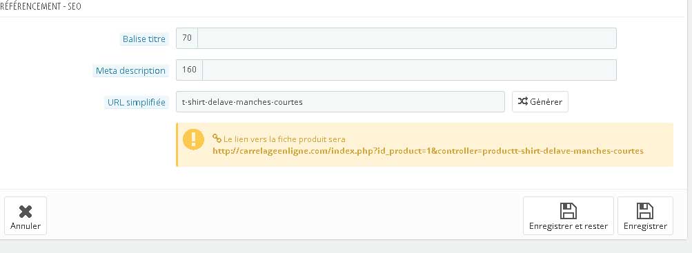 Nestor13550 Posted June 8, 2016 Author Share Posted June 8, 2016 Merci de votre réponse. Donc ce n’est pas un problème technique, mais bien une mise à jour de Prestashop qui a supprimé cette ligne ? Alors, pourquoi garder les mots clés dans les catégories ? Link to comment Share on other sites More sharing options...