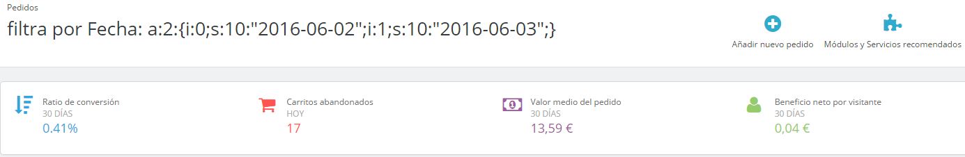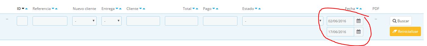 Error al filtrar pedidos por fecha en Back office