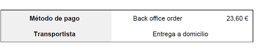 alexmp230 Posted June 9, 2016 Share Posted June 9, 2016 Hola buenas tardes, actualmente estoy haciendo pruebas de manejo de pedidos desde el backoffice ya que por ahora voy a dejar la tienda en modo catálogo y realizar los pedidos manualmente. Mi problema es que da igual que métedo de pago elija al crear un pedido (img1), que siempre me aparece que el pago es "back office order"(img2). En un principio no es algo de suma importancia, lo peor es que también aparece eso en las facturas.(img3) ¿Hay alguna manera de solucionarlo? Gracias y un saludo. Link to comment Share on other sites More sharing options...