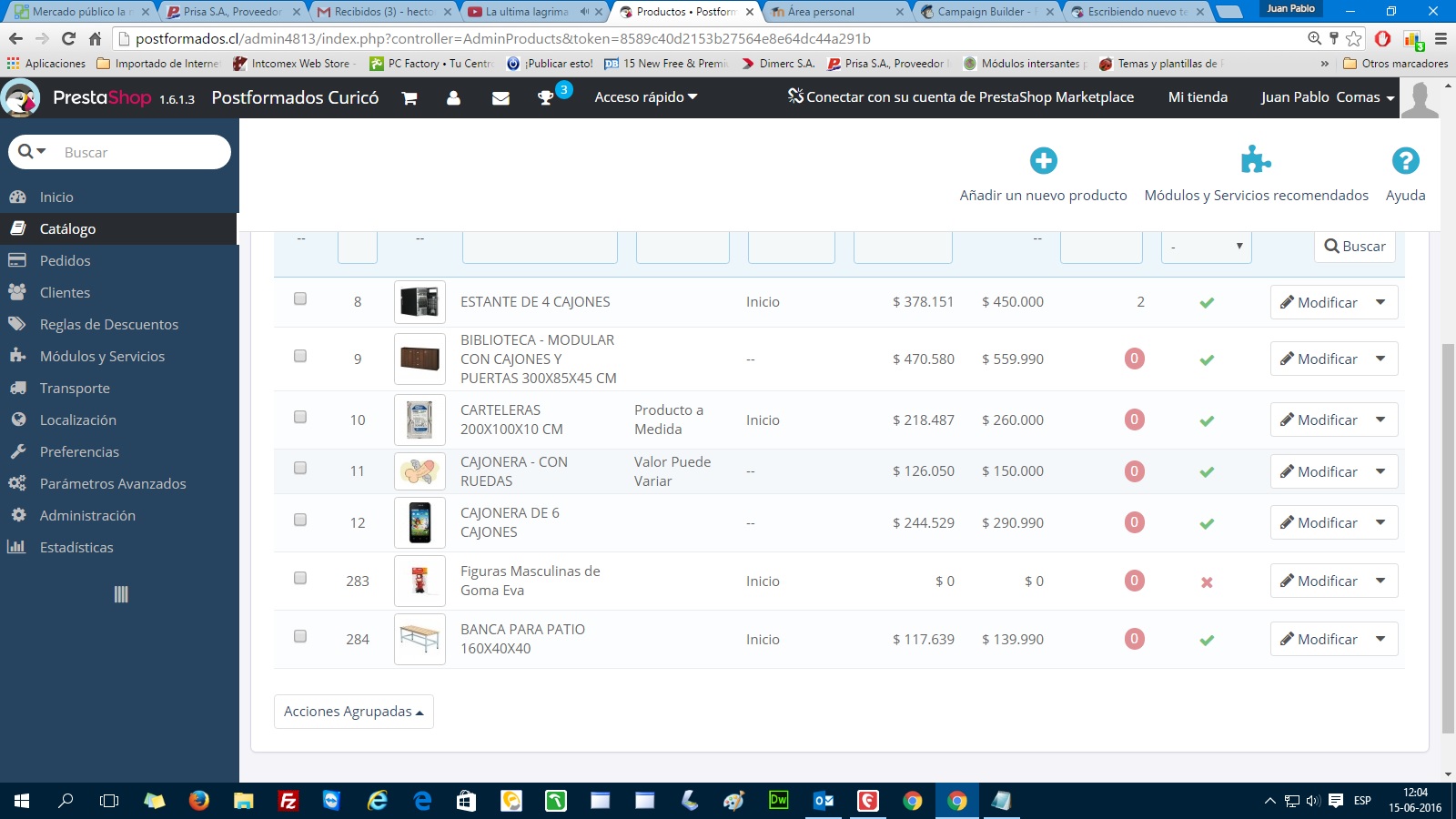 tecnologicas Posted June 15, 2016 Share Posted June 15, 2016 Estimados, les Escribo porque estoy creando una tienda de muebles a la cual ya le agregué pocos productos, pero me percaté que en el back office aparecen unas imágenes las cuales no pertenecen a las subidas por mi, pwero en el front office no hay problemas , solo en el back office. ** por favor observar el producto "CAJONERA - CON RUEDAS" les dejaré pantallazos para que me guíen que sucede Link to comment Share on other sites More sharing options...