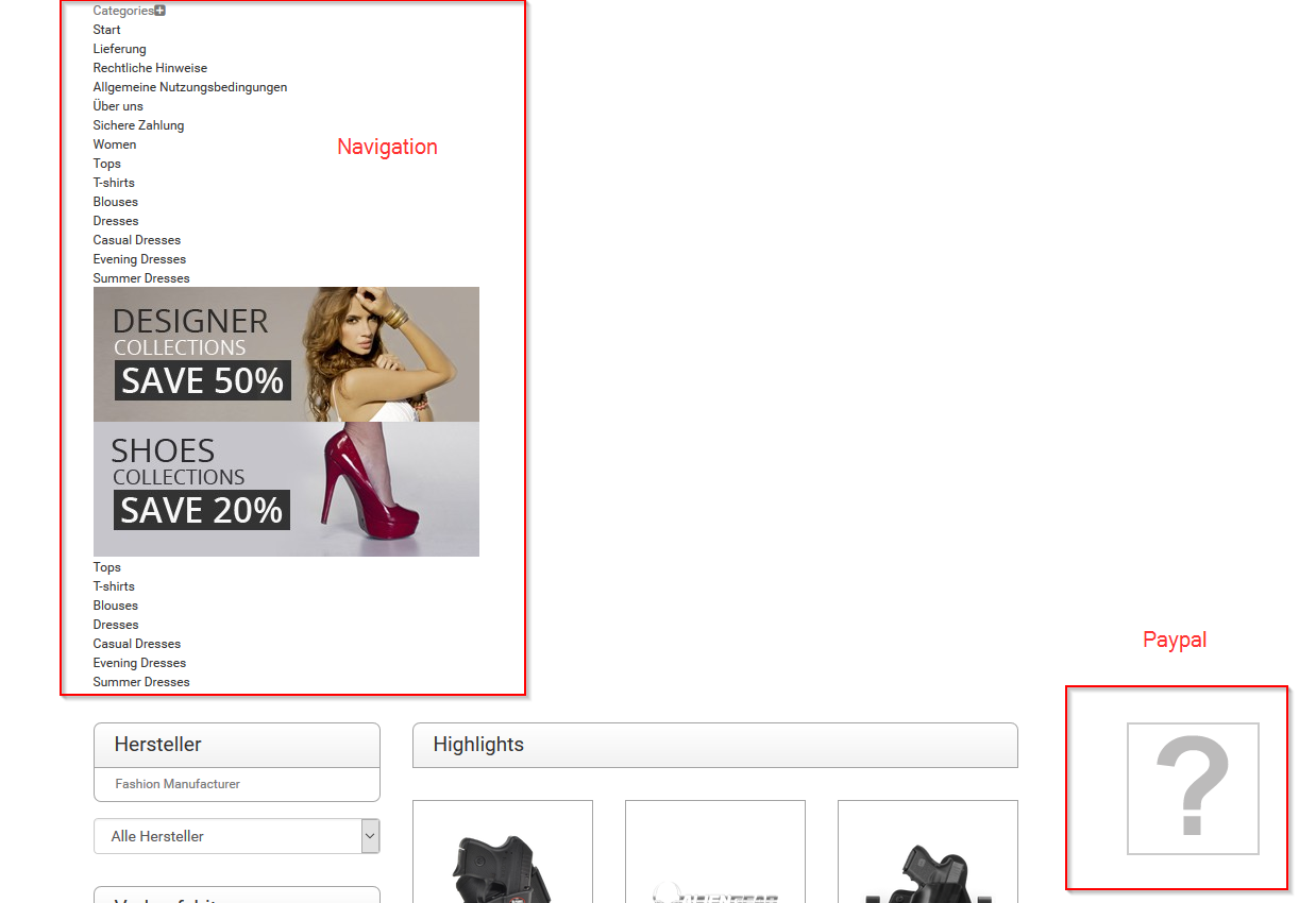 Wir haben das Theme installiert, soweit so gut, aber leider haben wir mehrere kleinere Probleme. Im Header wird das Menu nicht korrekt angezeigt. Rechts wurde nach aktivierung des Paypalmoduls ein Block eingefügt, welcher die Produktansicht eindruckt, denn die neue Seitenleiste rechts braucht Platz.