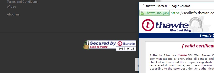 4thbasement Posted June 22, 2016 Author Share Posted June 22, 2016 Hi mdekker, thank you for the suggestion. That module is basically the same as HTMLbox? They both end up skewed (showing half way)on the left side above the other footer links/content (but they are intact, atleast). I'm not sure how that Seal module works but this is the code in BO: <div id="thawteseal" style="text-align:center;" title="Click to Verify - This site chose Thawte SSL for secure e-commerce and confidential communications."> <div><script type="text/javascript" src="https://seal.thawte.com/getthawteseal?host_name=www..com&size=S&lang=en"></script></div> it does nothing when placed in HTMLbox/contentBox.. *Confused* Link to comment Share on other sites More sharing options...