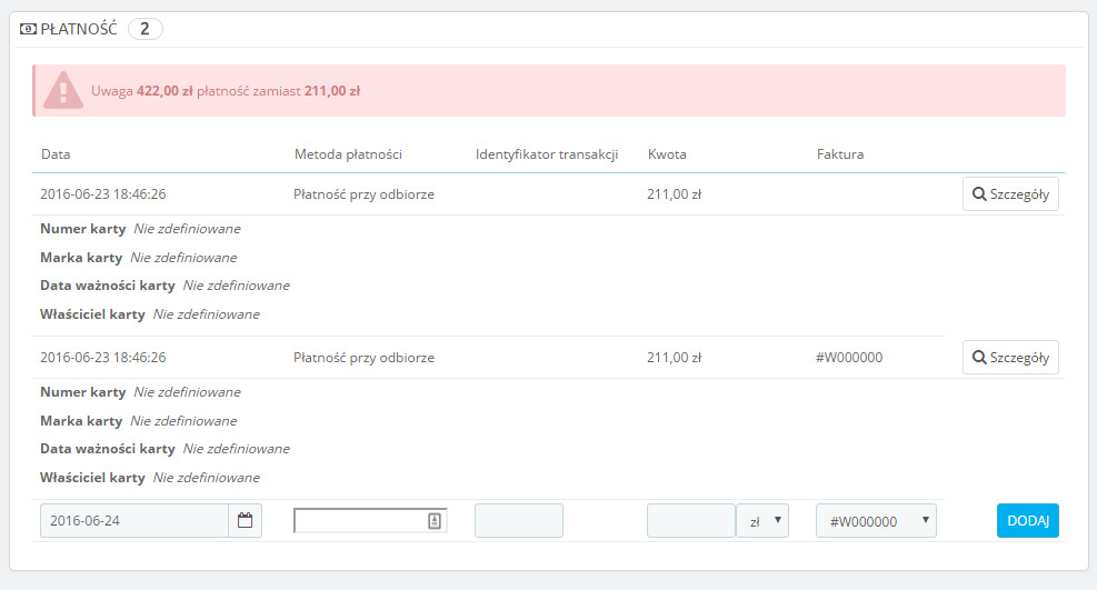 0 proghead Posted June 24, 2016 Share Posted June 24, 2016 (edited) Ja mam wszystkie tłumaczenia w Lokalizacja > Tłumaczenia tego modułu na PL, a na stronie i tak pokazuje po angielsku. Czy gdzieś w opcjach konfiguracyjnych modułu zmienia się język? Przeinstalowanie nic nie zmienia. Kolejny problem, dlaczego na podlgądzie zamówienia w których wybrano płatność pobraniową, widzę płatność podwójnie? Pobranie powinno być na 211, a widnieje 422. Edited June 24, 2016 by proghead (see edit history) Link to comment Share on other sites More sharing options...