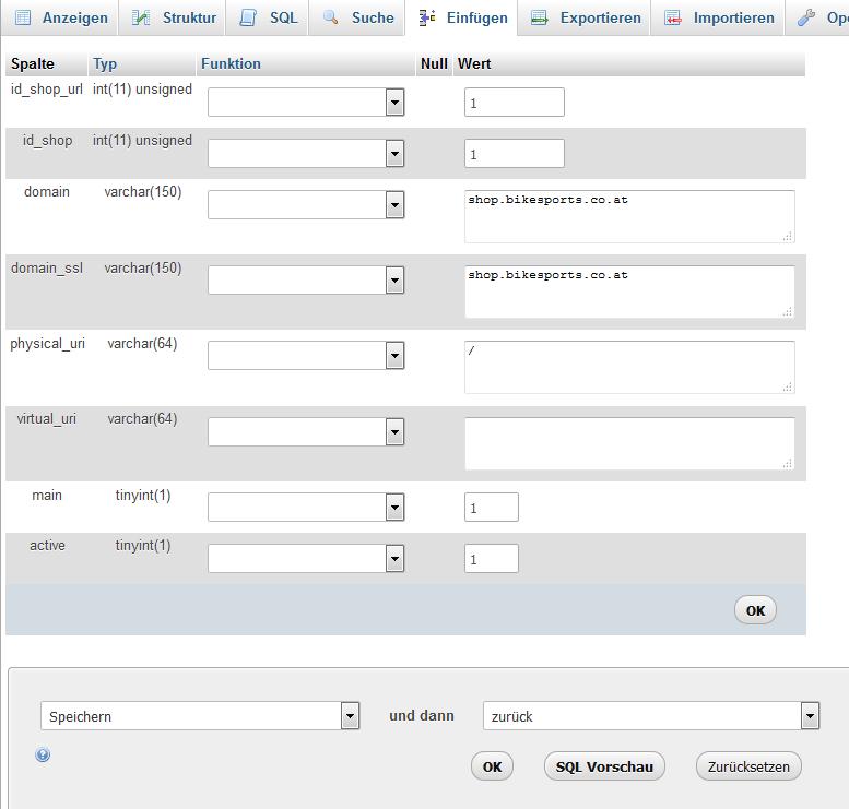 christd Posted June 24, 2016 Author Share Posted June 24, 2016 (edited) servus ... wo soll ich das eingeben!in der tabelle shop_url ist folgender eintrag gesetzt -> siehe bildwenn ich, wie du sagst, ein / nach der Domain einfüge, geht garnix ... krieg dann im Browser die Meldung "Umleitungsfehler" Edited June 24, 2016 by christd (see edit history) Link to comment Share on other sites More sharing options...