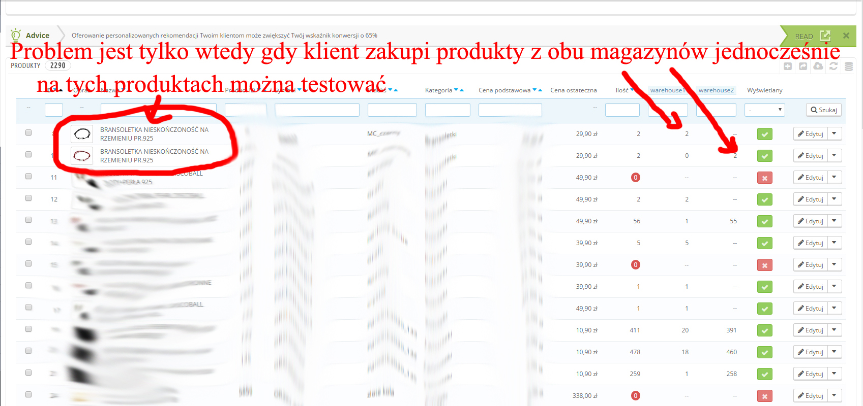 Witam, mam następujący problem, który pojawił się po włączeniu zaawansowanego zarządzania magazynem.