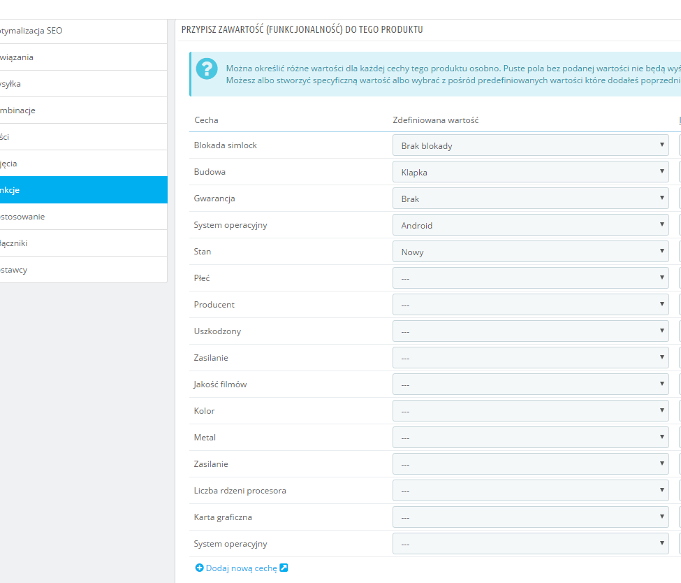 chciałbym sie dowiedzieć w jaki sposób mogę przypisać funkcje do wybranych kategorii podczas dodawania produktu na stronę?