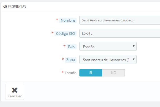 Prestashop sólo me deja crear un Estado (provincia) poniendo un ISO inventado y hasta ahí bien, pero claro si alguien de la ciudad de al lado quiere venir a recoger la comida no se pueden registrar porque su calle pertenece a otra ciudad (esto si desconectara todas las otras provincias).