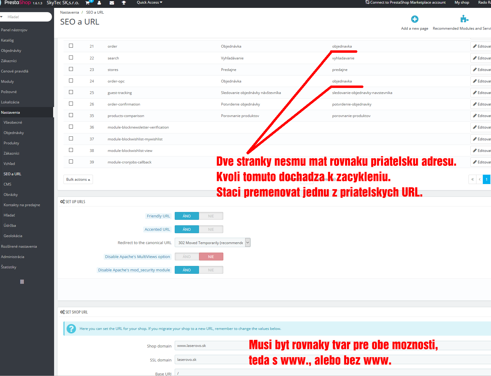 Caleydon Posted July 9, 2016 Share Posted July 9, 2016 To nevylucuje fakt, ze z nejakeho ineho dovodu mozes mat nastavenu rovnaku priatelsku adresu pre 2 (alebo) viac stranok. Skontroluj to. Link to comment Share on other sites More sharing options...