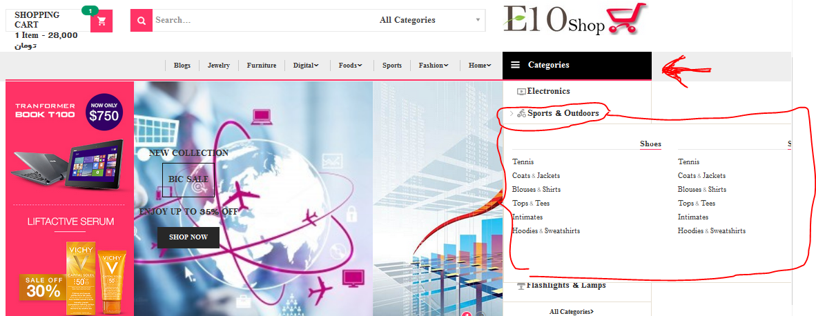 the issue seems related to your theme styling or mega menu configuration - it is English but still using RTL style.