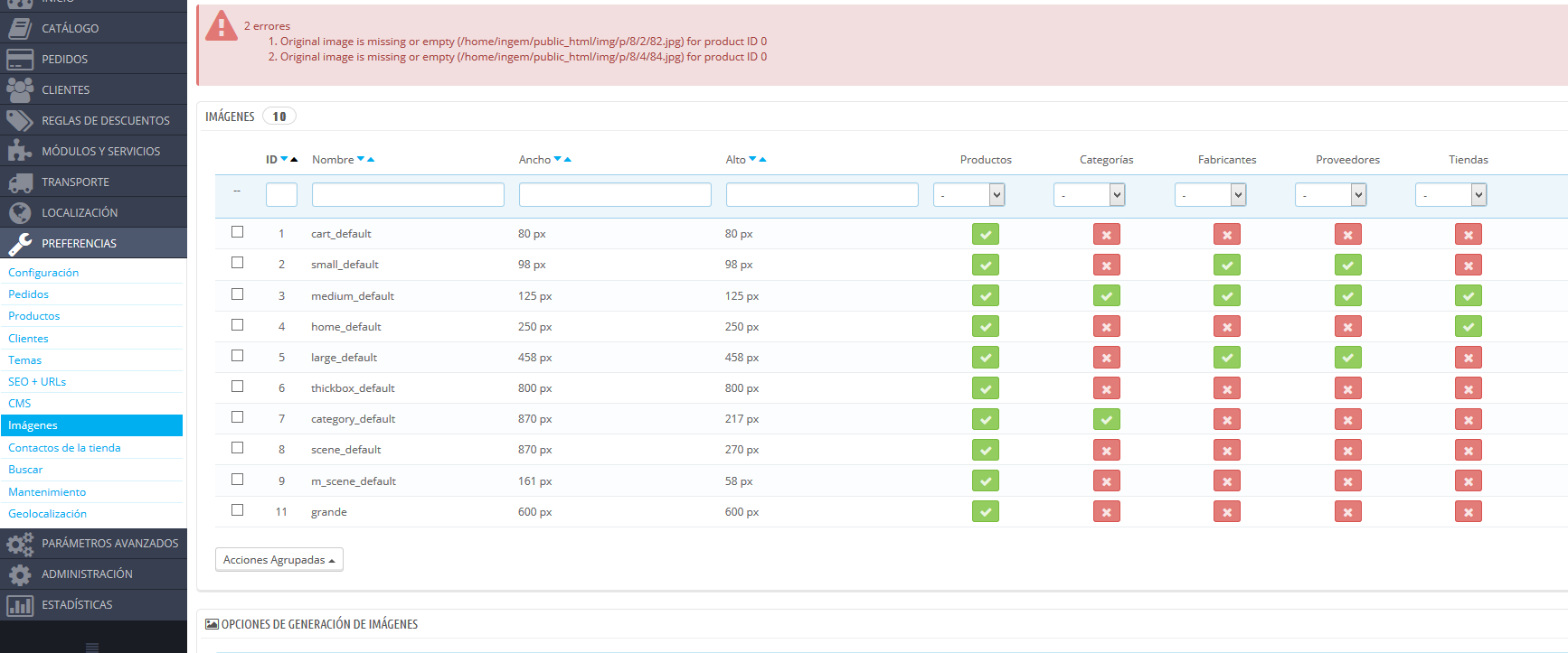 lubarragan Posted July 15, 2016 Share Posted July 15, 2016 Estimados; me es imposible crear imágenes, o subir imagenes en los productos de mi prestashop 1.6; he revisado los foros de que ya habían sobre este tema sin tener ningún resultado, el error es “error al crear imagen adicional”, hice todo lo que ya han dicho en los foros anteriores y nada, alguien me podría dar una mano? Los registros se crean en la BD en la tabla de imágenes, pues he probado cuando quiero regenerara las miniaturas me arroja este error: 2 errores Original image is missing or empty (/home/ingem/public_html/img/p/8/2/82.jpg) for product ID 0 Original image is missing or empty (/home/ingem/public_html/img/p/8/4/84.jpg) for product ID 0 Voy a carpeta correspondiente a las rutas que están más arriba y no existe ninguna imagen. Dejo tres imagenes; la primera es el error en si, y la segunda es la base de datos y la tercera es cuando quiero regenerar las miniaturas. . Les agradezco mucho de antemano. Link to comment Share on other sites More sharing options...