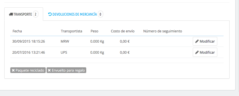 SOLUCIONADO Problema con los transportistas del pedido en el Backoffice