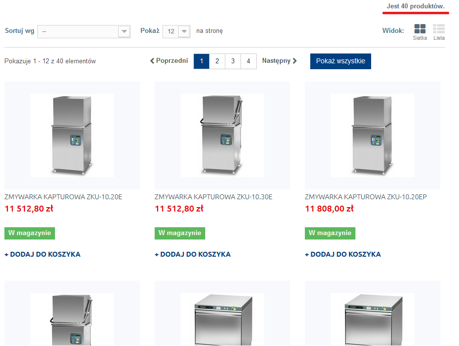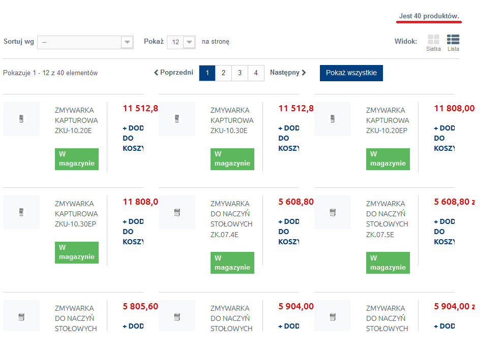 1) Najpierw klikam na kategorię, ładnie widać produkty: