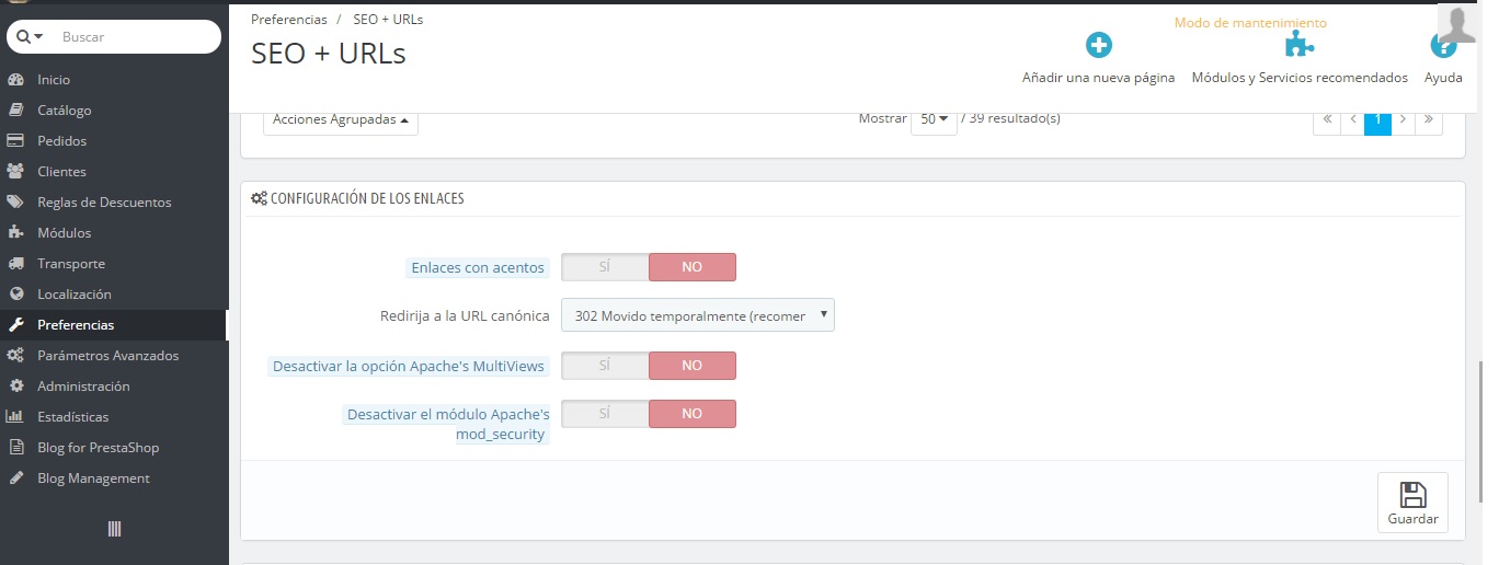 roolz Posted July 23, 2016 Share Posted July 23, 2016 (edited) Buenas tardes y Feliz sábado. Tras actualizar prestashop a la versión 1.6.1.6 , el botón de activar y desactivar URLS amigables ha desaparecido .. Lo que ha provocado que todas las URLS de mi tienda estén horribles para el SEO de la página. Puede que sea por algun problema en el htaccess? No tengo ni idea de como resolverlo. A alguien más le ha ocurrido? Mil gracias ! Edited July 23, 2016 by roolz (see edit history) Link to comment Share on other sites More sharing options...