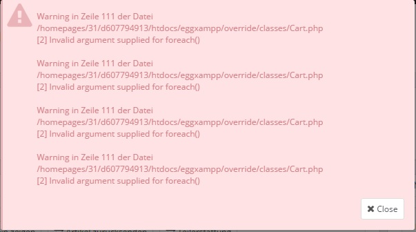 Whiley Posted July 24, 2016 Share Posted July 24, 2016 Bei Aufruf von einer Bestellung kommt öfters diese Meldung. Kann mir jemand sagen, wie ich die entfernen kann?meldung.jpg Vielen Dank Außer das diese Warnmeldung auftaucht passiert ja sonst nichts, oder? Könnte es sein, daß du "Error-Reporting" noch versehentlich eingeschaltet hast? Prüfe mal die Datei config\defines.inc.php Falls dort steht: define('_PS_MODE_DEV_', true); ändere das in: define('_PS_MODE_DEV_', false); Grüsse Whiley Link to comment Share on other sites More sharing options...