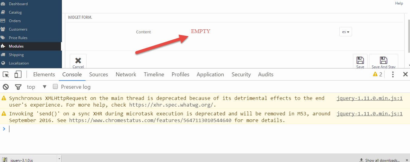 vekia Posted July 23, 2016 Share Posted July 23, 2016 these entries from console arent errors, they are warnings so they cant affect tinymce and other js scripts as long as there will be no red js error. you've got the problem with this tinymce editor only there (i see that this is a custom module) but also in other parts of shop like cms edit page? Link to comment Share on other sites More sharing options...