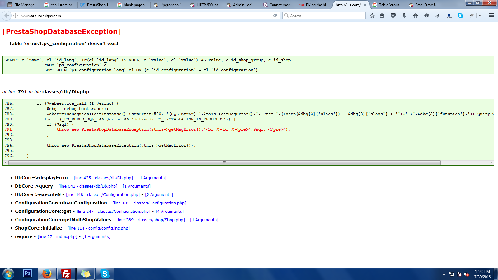 [PrestaShopDatabaseException] Table 'orous1.ps_configuration' doesn't exist