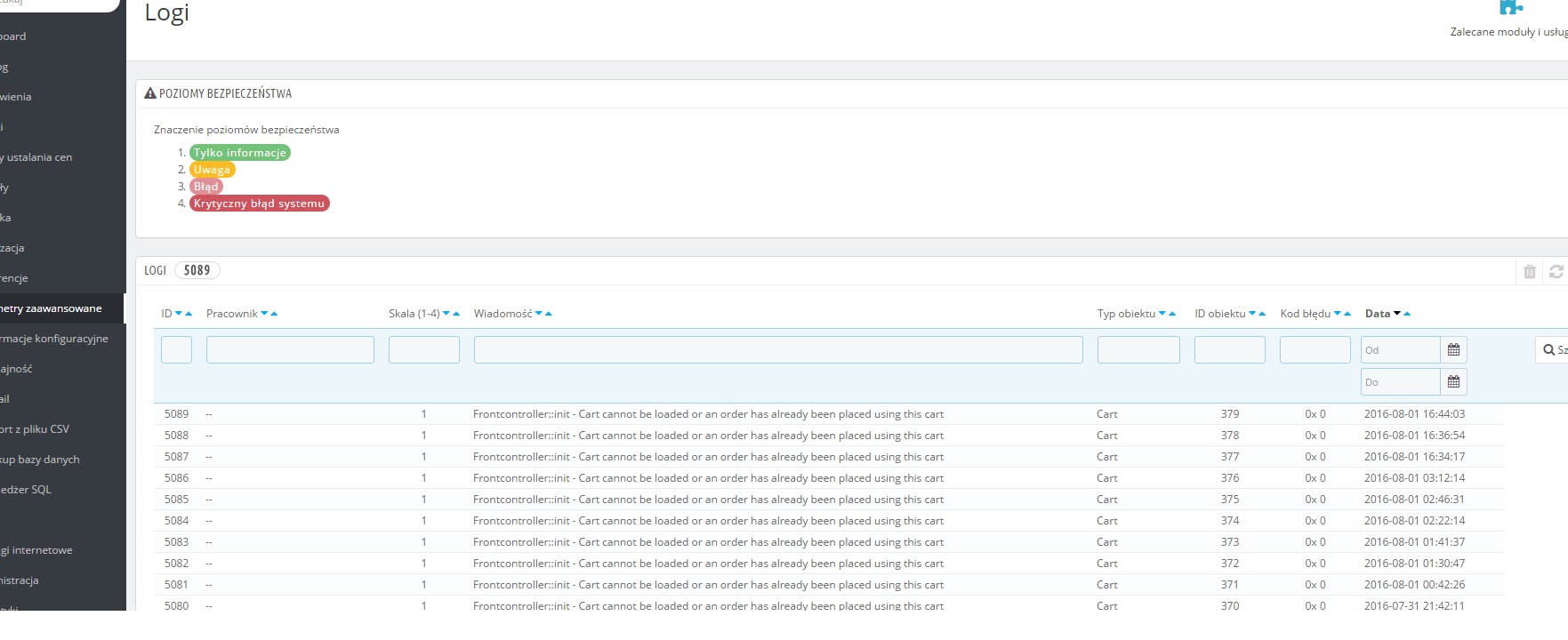 Po zakupie produktu - bez względu jaką wysyłkę czy płatność wybiorę (payu, przelew czy płatność przy odbiorze) wyskakuje taka informacja o błędzie w Logach - poza tą informacją wszystko wygląda ok. Mógłby mi ktoś powiedzieć o co chodzi i jak to naprawić?