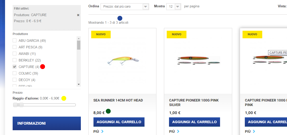 denny8x Posted August 5, 2016 Share Posted August 5, 2016 (edited) Salve, Vorrei segnalare un comportamento anomalo della funzione filtra per prezzi del modulo Navigazione per strati. Il modulo non tiene conto dei valori selezionati nella slide bar... a volte mostra prodotti superiori al prezzo massimo impostato o inferiori a quello minimo, in alcuni casi anche di diversi euro e non solo di centesimi che è uno scenario accettabile, altre volte non c'è coerenza tra il numero di oggetti trovati e il numero di oggetti mostrati. Allego una immagine per essere maggiormente chiaro. Dal punto rosso si evince 4 risultati per quel marchio, dal punto blu come effettivamente accade vengono mostrati 3 articoli. Punto giallo prezzo max 6.90 - punto verde viene mostrato un articolo dal costo di 8 Può essere dovuto a configurazioni errate? ci sono solo due filtri attivi produttore e prezzo. Edit: sia PS che il modulo sono aggiornati alle ultime versioni disponibili Edited August 5, 2016 by denny8x (see edit history) Link to comment Share on other sites More sharing options...