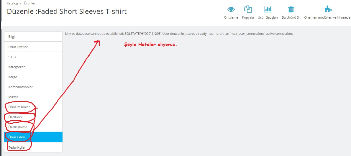 lonely2134 Posted August 24, 2016 Share Posted August 24, 2016 (edited) Selamün Aleyküm, PrestaShop 1.6.1.6 Sürümünü Kullanıyoruz Kategorileri ekledik Sıra Ürün eklemeye geldi yanlız Ürün eklerken hatalar ALIYORUZ. Pek anlamam Veritabanından sorunumuz neden kaynaklanır acaba Aleyküm Selam, firması ile çalışıyorsun Hosting Hangi? 1) Yapman Gereken güzel bir yedek al hem Veritabanı hemde FTP yedeğini aldıktan Sonra hosting firması ile Görüş. CPanel kullanıyorsan mümkünse seni Plesk Panele alsınlar. Plesk Panel kullanıyorsan mutlaka seni Başka Sunucuya taşısınlar. (NOT: Hosting firmasına diyeceksin ki Sizin sunucularda PrestaShop kurulu OLUP sorunsuz çalısan Bir Sunucuya taşıyın benim sitemi). Taşıdıktan Sonra aşağıdaki adımları uygula. 2) Yedeklerini yeni hostinge yükle. 3) Sitesi sorunsuz çalıştıktan Sonra phpMyAdmin 'e gir ( ps_connections_page | ps_connections_source | ps_cart | ps_page) parantez icinde yazdığım tabloların Tamamını Ctrl + F Tusu ile bul boşalt komutunu uygula ettik. 4) Bu videodaki adımları uygula ( Video ) NOT: Videoda 1.18 sn yaptığı işlem tam belli olmuyor. Hangi dosyayı açtığı anlaşılmayabilir. TOOLS.PHP dosyasını açıp düzenleyeceksin. Edited August 24, 2016 by lonely2134 (see edit history) Link to comment Share on other sites More sharing options...