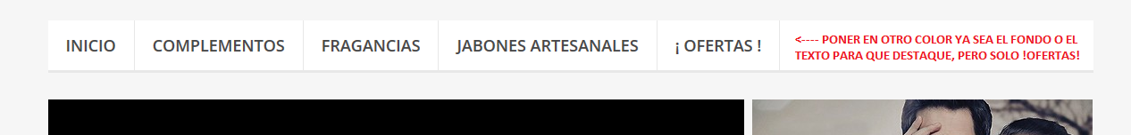 ventura Posted August 7, 2016 Share Posted August 7, 2016 La manera menos complicada de hacerlo es mediante css, en el archivo themes/tu_plantilla/css/modules/blocktopmenu/css/superfish-modified.css Coloca esto en el principio del archivo .sf-menu li a[title="NOMBRE_DE_LA_CATEGORIA"] { color: white; background: red; } El nombre tendrá que estar en el mismo formato, mayusculas.minusculas con el que esta creado ya que en el modulo el texto esta en formato generico de mayusculas (uppercase) Link to comment Share on other sites More sharing options...