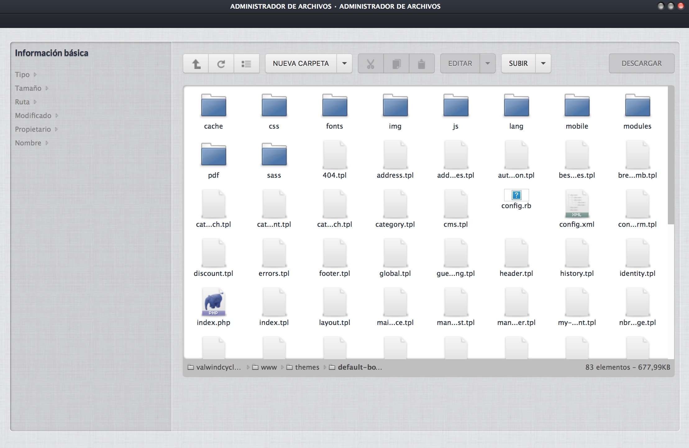 Valwindcycles Posted August 8, 2016 Share Posted August 8, 2016 Buenas estoy modificando varios módulos de mi tienda... y hoy al entrar en mi servidor veo en la carpeta de "tema" en la plantilla original ese archivo con interrogante..... no entiendo si esta "tocado" o no pero tiene importancia en el rendimiento de la tienda ? podría subirlo y cambiarlo por el original ? Una ayuda please... adjunto imagen Gracias Link to comment Share on other sites More sharing options...