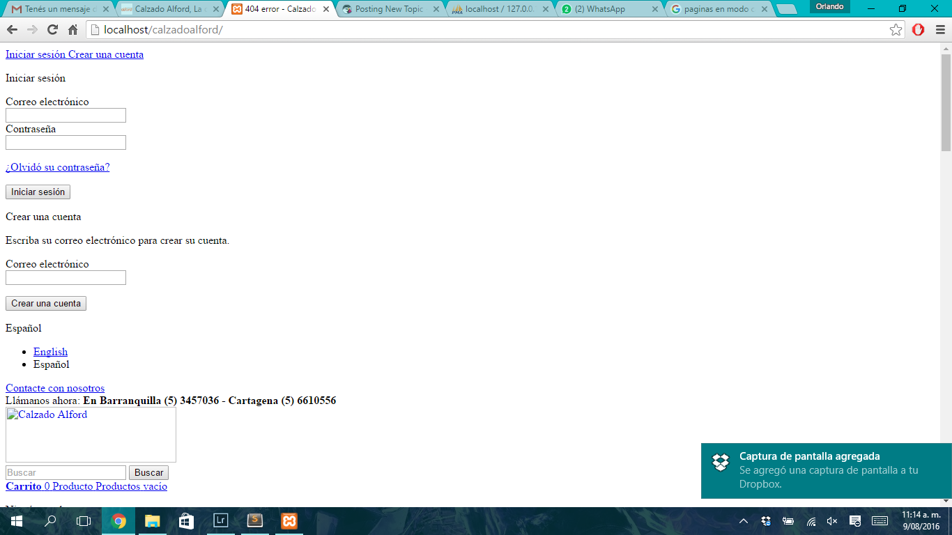 calzadoalford Posted August 9, 2016 Share Posted August 9, 2016 Dejo 2 pantallasos paraque entiendan mejor a lo que me refiero. Me parece muy raro y ya he intentado hacer de todo pero no lo he podido solucionar, he descargado versiones muy anteriores pero no se soluciona y como última opción hice una instalación nueva de prestashop y si se ve perfecta, si ningun problema (también está entre las capturas) Please necesito encontrar una pronta solución y de antemano gracias. Link to comment Share on other sites More sharing options...