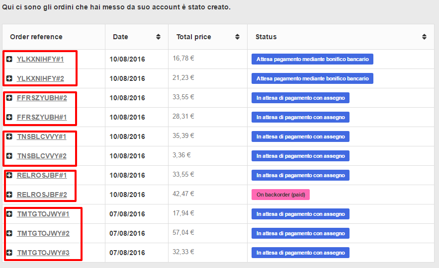 grisu2001 Posted August 10, 2016 Share Posted August 10, 2016 Ciao a tutti,non riesco a capire come mai quando ricevo un ordine di 2 o più prodotti diversi, ricevo praticamente 2 o piu messaggi, 2 o piu ordini ecc...Praticamente al posto di ricevere un singolo ordine con tutti i prodotti richiesti, ricevo un ordine separato ma con lo stesso codice#1 per esempio: YLKXNIHFY#1 YLKXNIHFY#2 ecc... per tutti i prodotti ordinati!Devo impostare qualcosa?Grazie per l'aiuto Link to comment Share on other sites More sharing options...