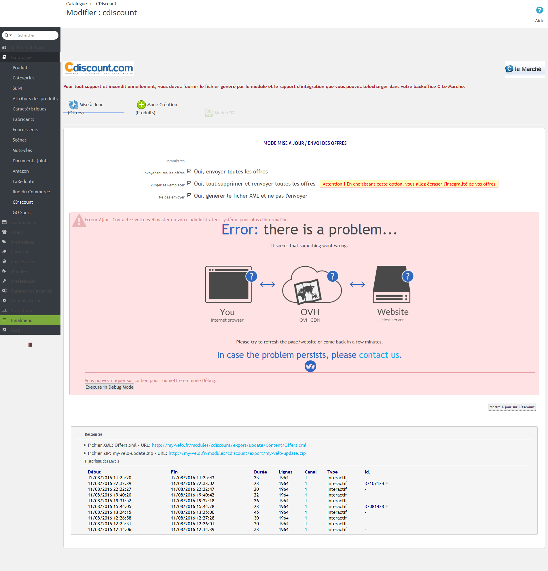 - Module CDiscount : un message d'erreur s'affiche quand j'exporte mes produits sur la place de marché (voir fichier joint)